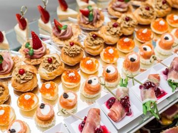 Mini-Sandwiches, Mini-Bacon & Egg pies, Cheese and Pineapple Kebabs, Veges & Dips, Seasonal Fruits, Sweet Treats, Mini Cupcakes, Cookies & more